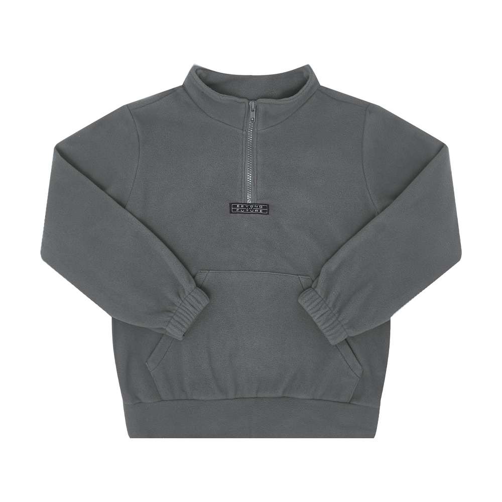 Seu fashionista curtindo o dia na casa dos amigos sem passar frio e cheio de estilo! O blusão confeccionado em malha soft na cor carbono, possuí abertura em zíper na gola e bolsos canguru.