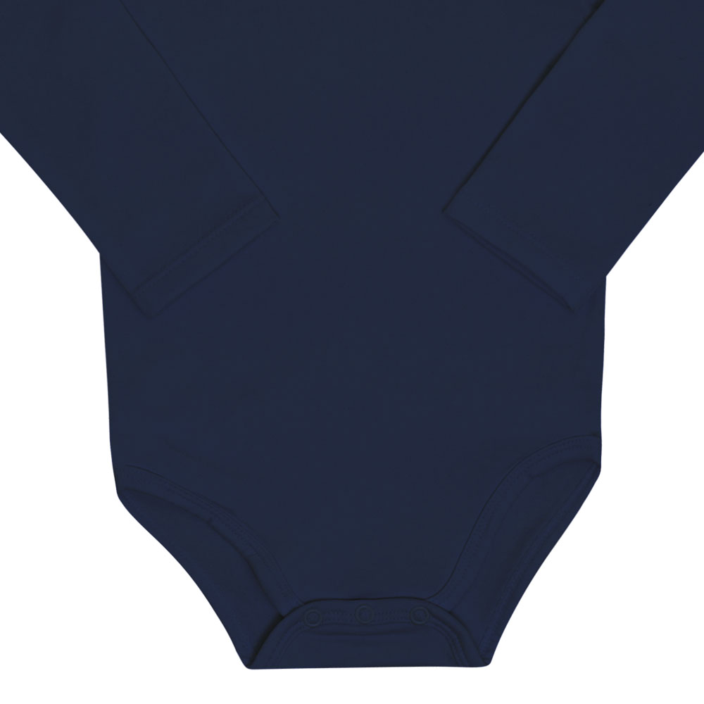 Body de manga longa confeccionado em malha térmica, ideal para os dias mais frios. Possui toque macio, ótimo caimento e proporciona conforto térmico ao bebê. A cor azul marinho é versátil e perfeita para compor diversos looks, sendo uma peça essencial no enxoval de inverno.