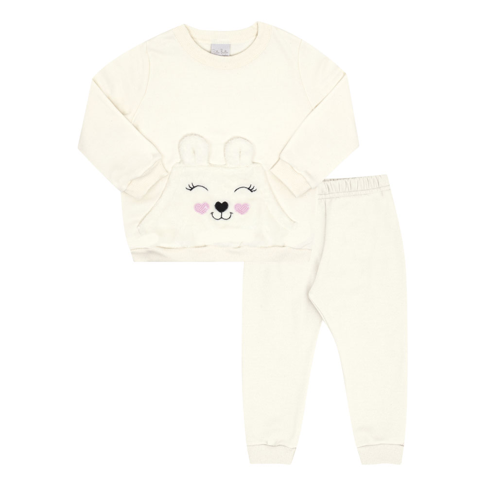 Look ideal para os dias mais fresquinhos! O blusão em moletom off white vem com bordado de ursinha super delicado e detalhe em paetê, enquanto a legging na cor amora em molecotton estampado garante conforto e liberdade para brincar. Um conjunto quentinho e cheio de charme!