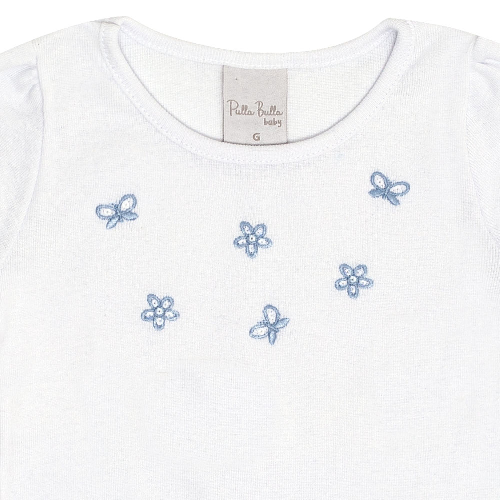 Visitar a vovó com conforto para curtir o abraço e a tarde divertida de passeio! Com nosso conjunto tudo isso é possível, a blusa na cor branca em ribana é confeccionado com elastano leve e possuí bordado frontal de flores deixando o look fresquinho, fofo e leve para um dia de sol e o short em cotton leve deixa tudo ainda mais confortável e seguro para sua pequena aventureira.