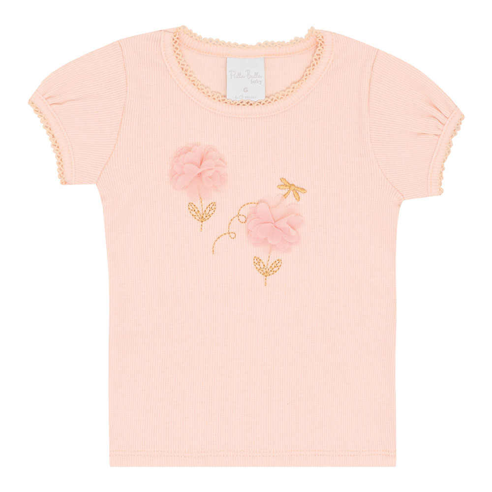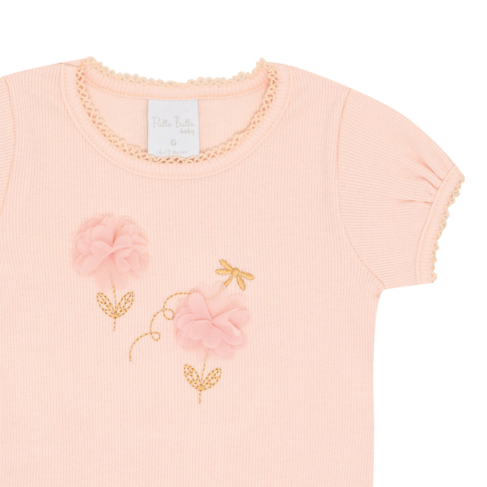 Conjuntinho que é uma gracinha! A blusa em ribana na cor rosa pó possui elastano leve deixando o look confortável para a hora de brincar e o short saia em cotton leve na cor rosê possuí tule deixando o look ainda mais fofo. A blusa possuí aplique bordado e aplique de flores na parte frontal da peça.