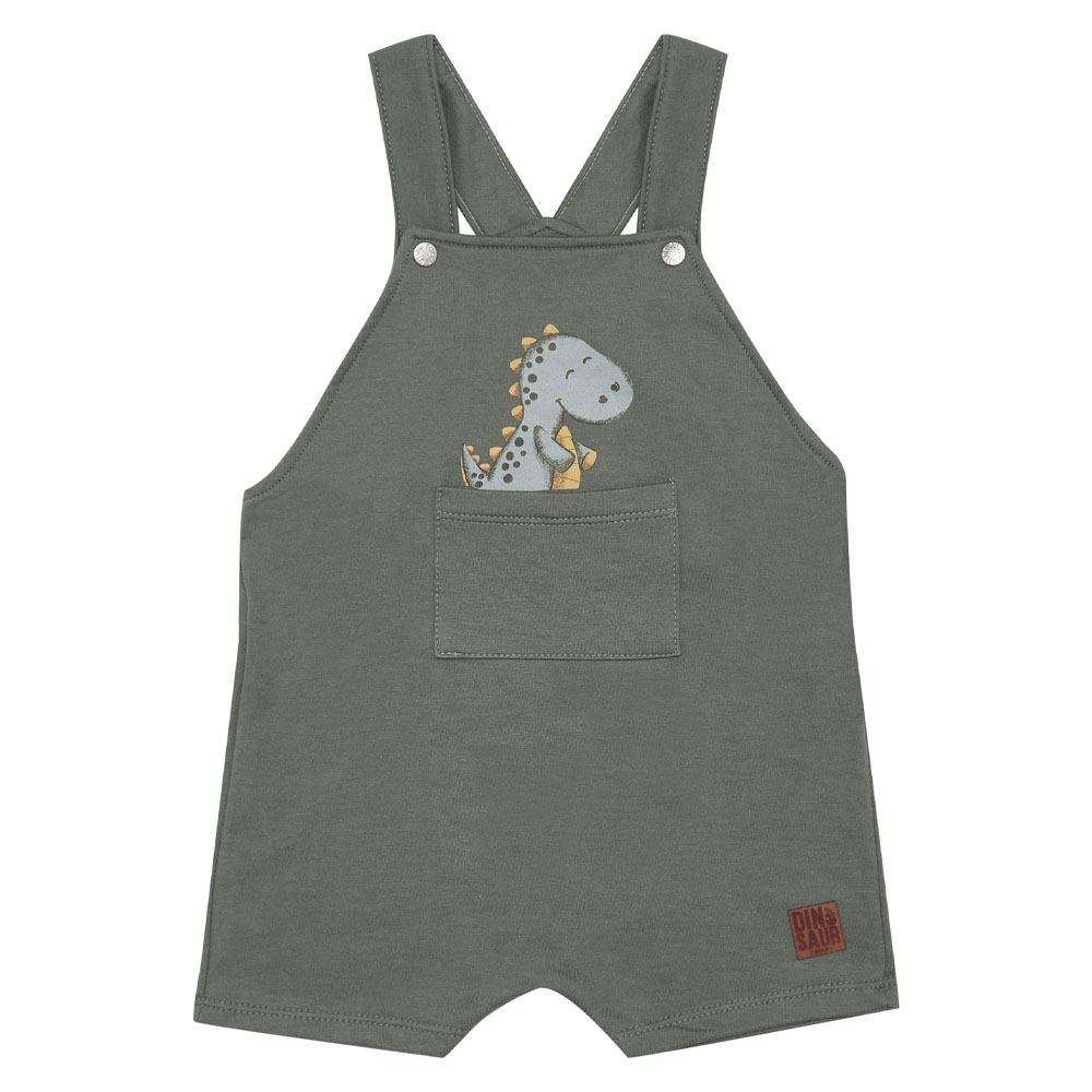 Com esse conjuntinho Pulla Bulla o seu gatinho vai arrasar e esbanjar charme por onde passar. Composta por uma Jardineira confeccionada em Moletinho na cor Verde floresta com estampa de dinossauro e para completa o look uma Camiseta lisa confeccionada em Meia malha na cor Amarelo ocre. Garantia de conforto, leveza e frescor para todo o Verão.