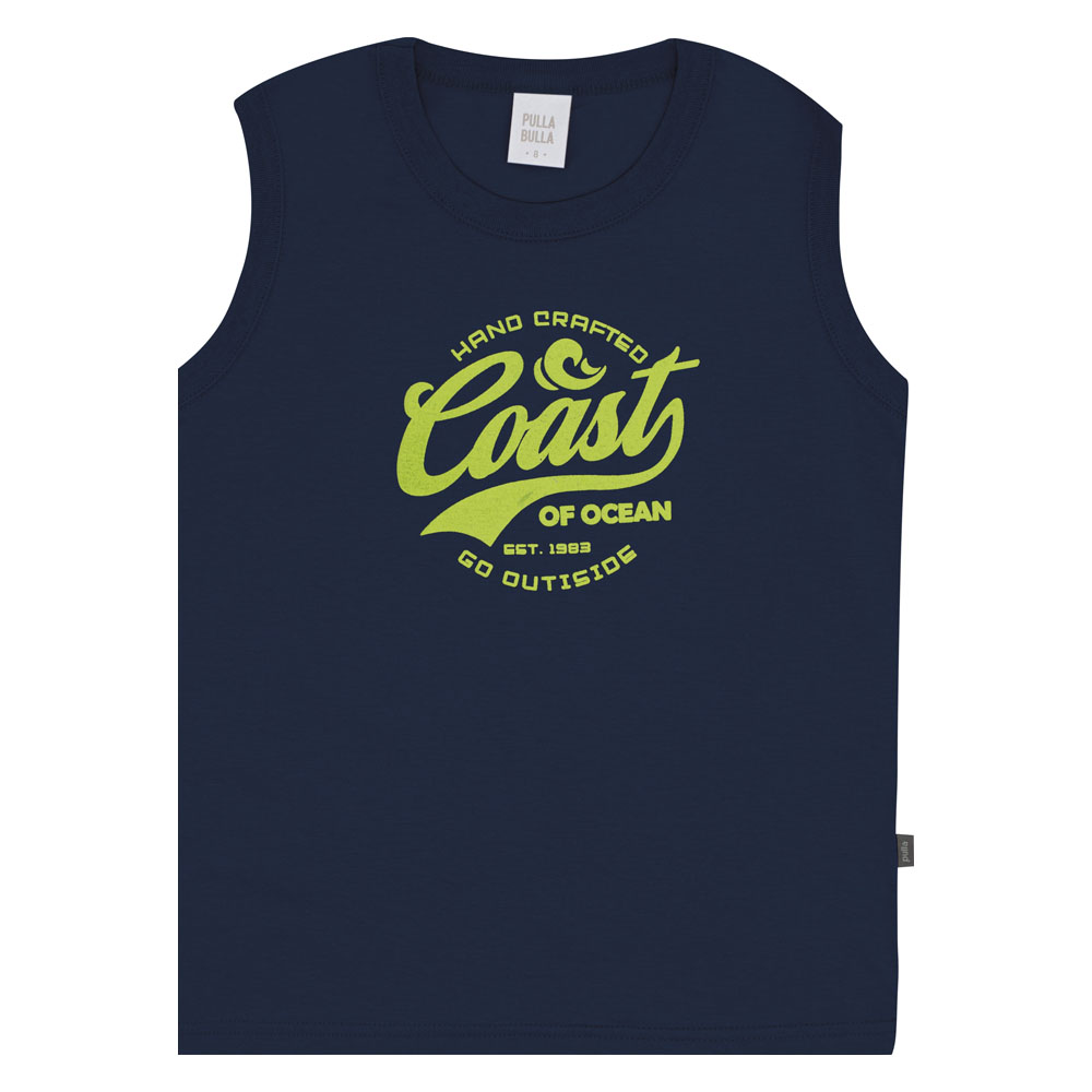 Conjunto infantil masculino composto por regata marinho em meia malha com gola reforçada, estampa com puff e escrita cheia de estilo, acompanhada de bermuda em moletom na cor abacate que garante conforto e liberdade. Ideal para passeios ao ar livre, momentos de diversão e brincadeiras