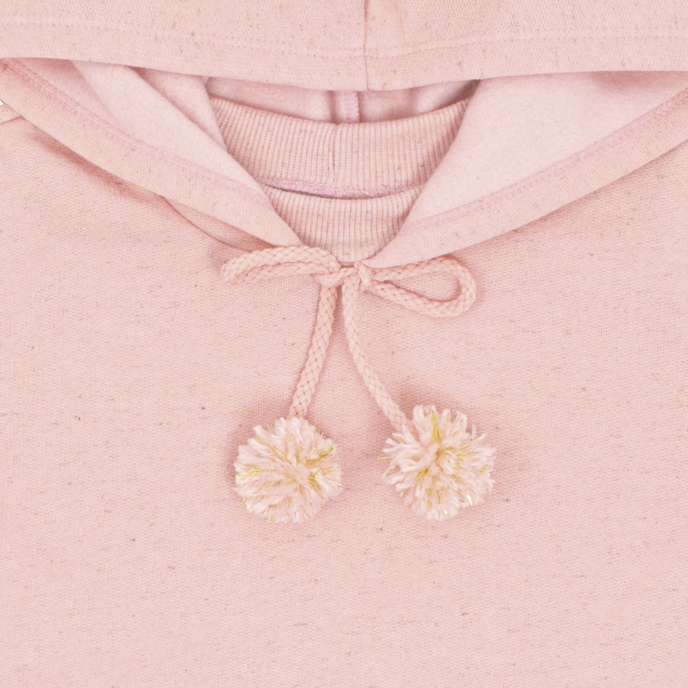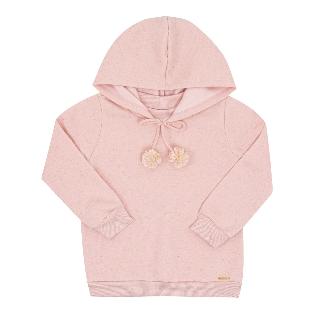 Estilo e conforto em cada detalhe! Esse conjunto rosê em moletom linho é perfeito para os dias fresquinhos. A blusa com capuz traz um charme especial com os pompons delicados na amarração, enquanto a calça garante liberdade de movimento para as pequenas aproveitarem o dia com muito conforto.