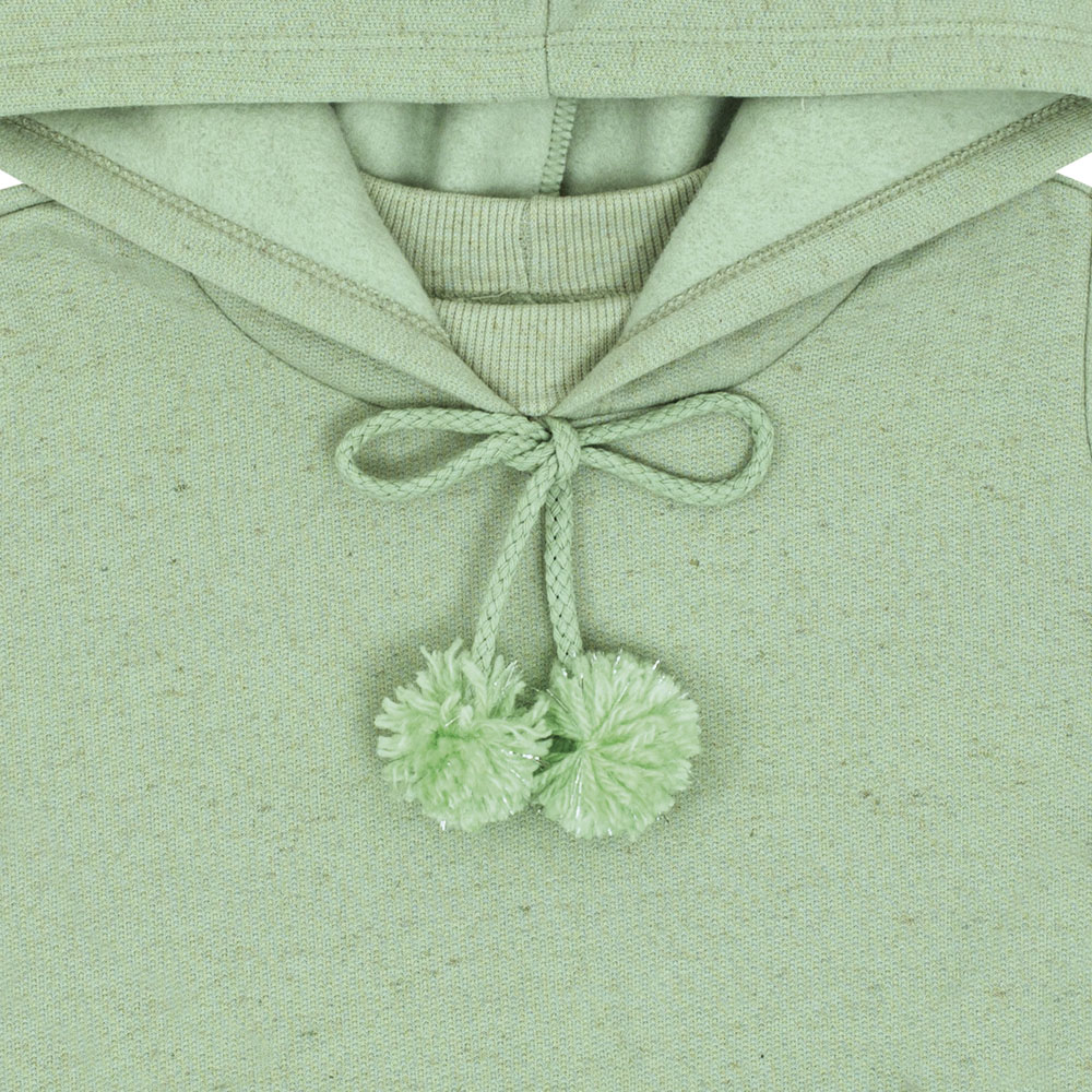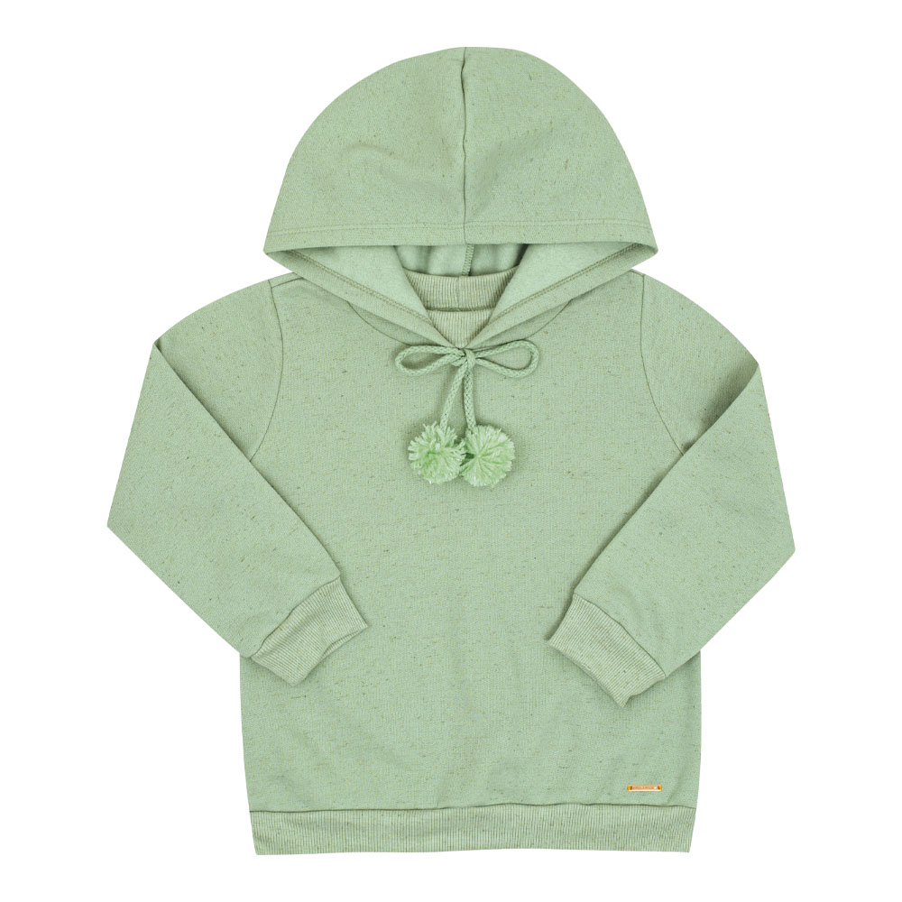 Estilo e conforto em cada detalhe! Esse conjunto pistache em moletom linho é perfeito para os dias fresquinhos. A blusa com capuz traz um charme especial com os pompons delicados na amarração, enquanto a calça garante liberdade de movimento para as pequenas aproveitarem o dia com muito conforto.