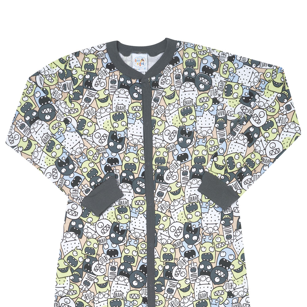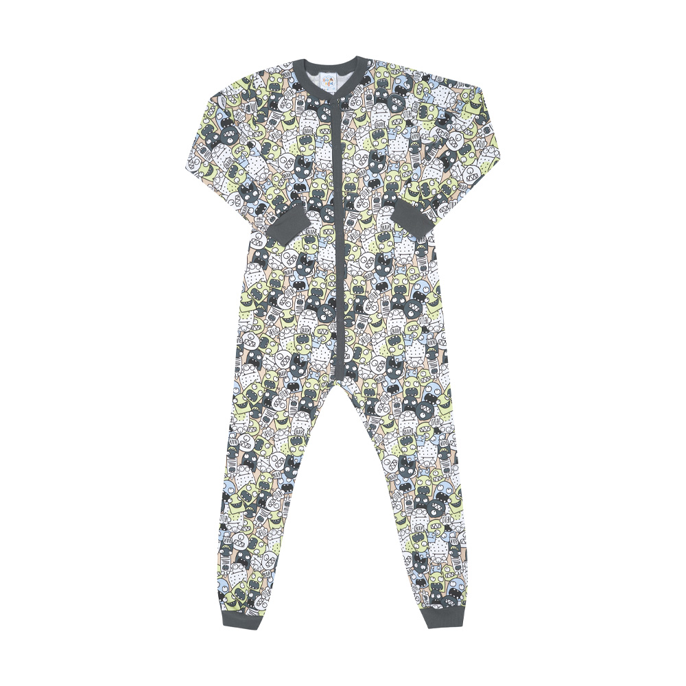 Esse pijama em modelo macação apresenta zíper frontal e é totalmente confeccionado em moletinho. A estampa rotativa de fantasmas e seres divertidos na cor carbono é o charme todo da peça. O pijama ideal para noites quentinhas e divertida dos pequeninos!