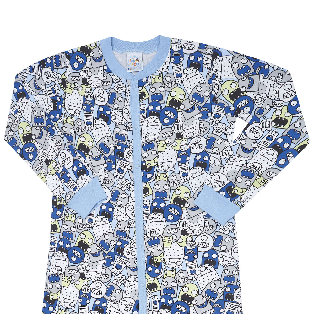 Esse pijama em modelo macação apresenta zíper frontal e é totalmente confeccionado em moletinho. A estampa rotativa de fantasmas e seres divertidos na cor hortência é o charme todo da peça. O pijama ideal para noites quentinhas e divertida dos pequeninos!