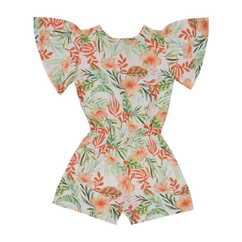Versátil e rápido, lookinhos com macacão são apostas certeiras para as fashionistas irem brincar com a amiguinha no parquinho. Confeccionado em malha leve, o macaquinho na cor laranja possuí estampa sublimada de flores e folhas tropicais. O conforto, liberdade e leveza em uma peça!