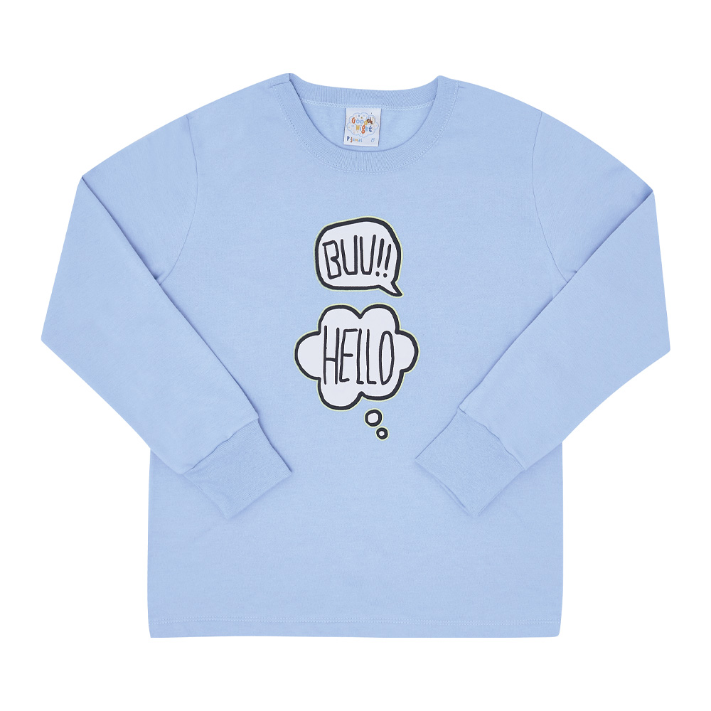 Quentinho e divertido para aquecer os pequenos durante a estação. Confeccionado em moletinho, o blusão de manga longa na cor hortênsia possuí estampa frontal com escrita “buu!” “Hello” e ambas brilham no escuro também. Já a calça possuí estampa rotativa na cor hortênsia de pequenos fantasmas e seres divertidos além de possuir elastano no cós. Tudo para garantir uma boa noite de sono aos pequenos aventureiros!