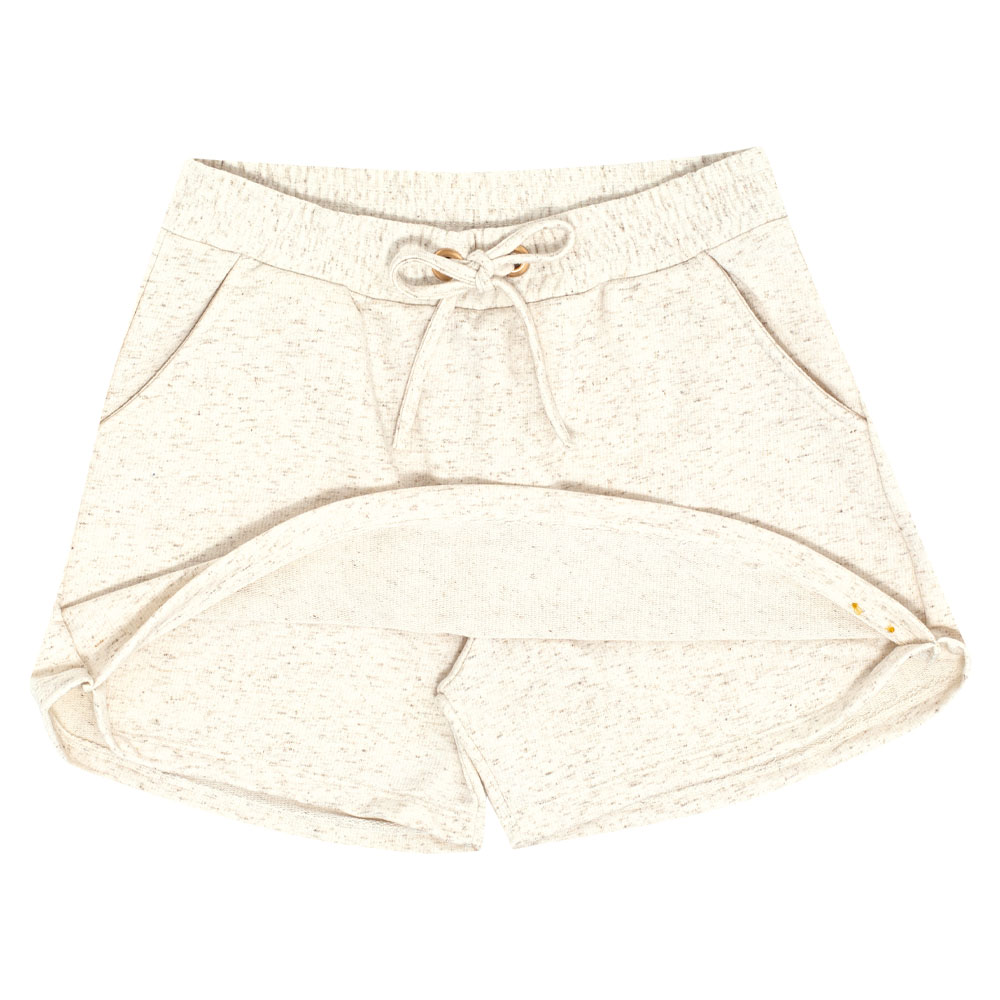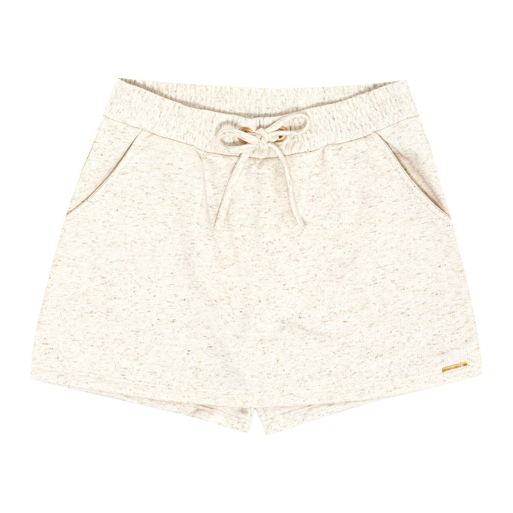 Sinta-se livre e confortável para curtir o dia com as amigas! Short saia confeccionado em moletom linho na cor natural, com bolsos funcionais, elástico no cós para maior conforto e movimentação e laço decorativo frontal.
