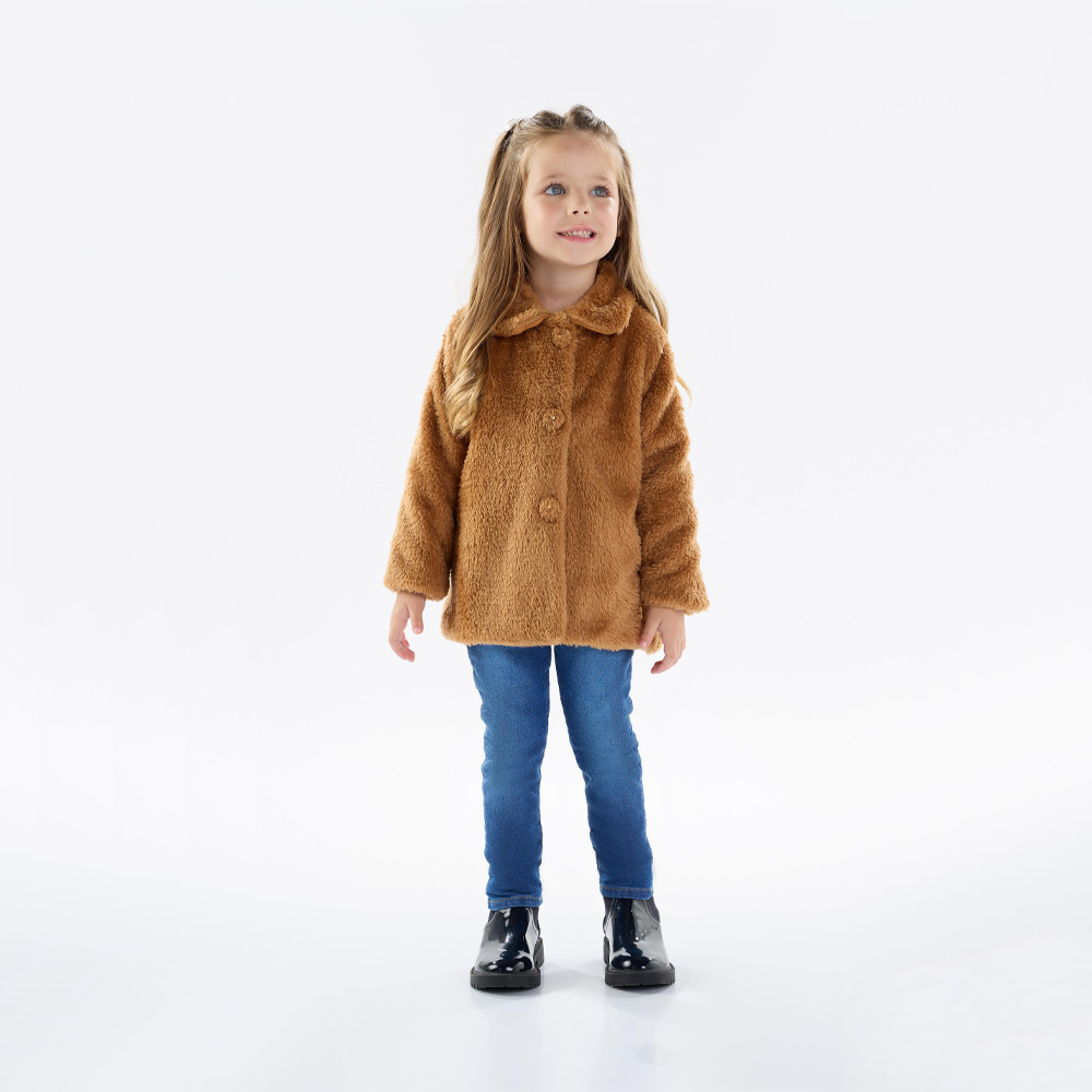 Quentinho e confortável para sua fofurinha se manter aquecida a todos os momentos do dia. Confeccionado com tecido peluciado e meia malha, o sobretudo na cor castor vai se tornar o casaco favorito da sua pequena fashionista, possuí fechamento com botões frontais e uma pequena placa de metal com identificação Pulla Bulla próxima da barra da pela ao lado esquerdo de quem veste.