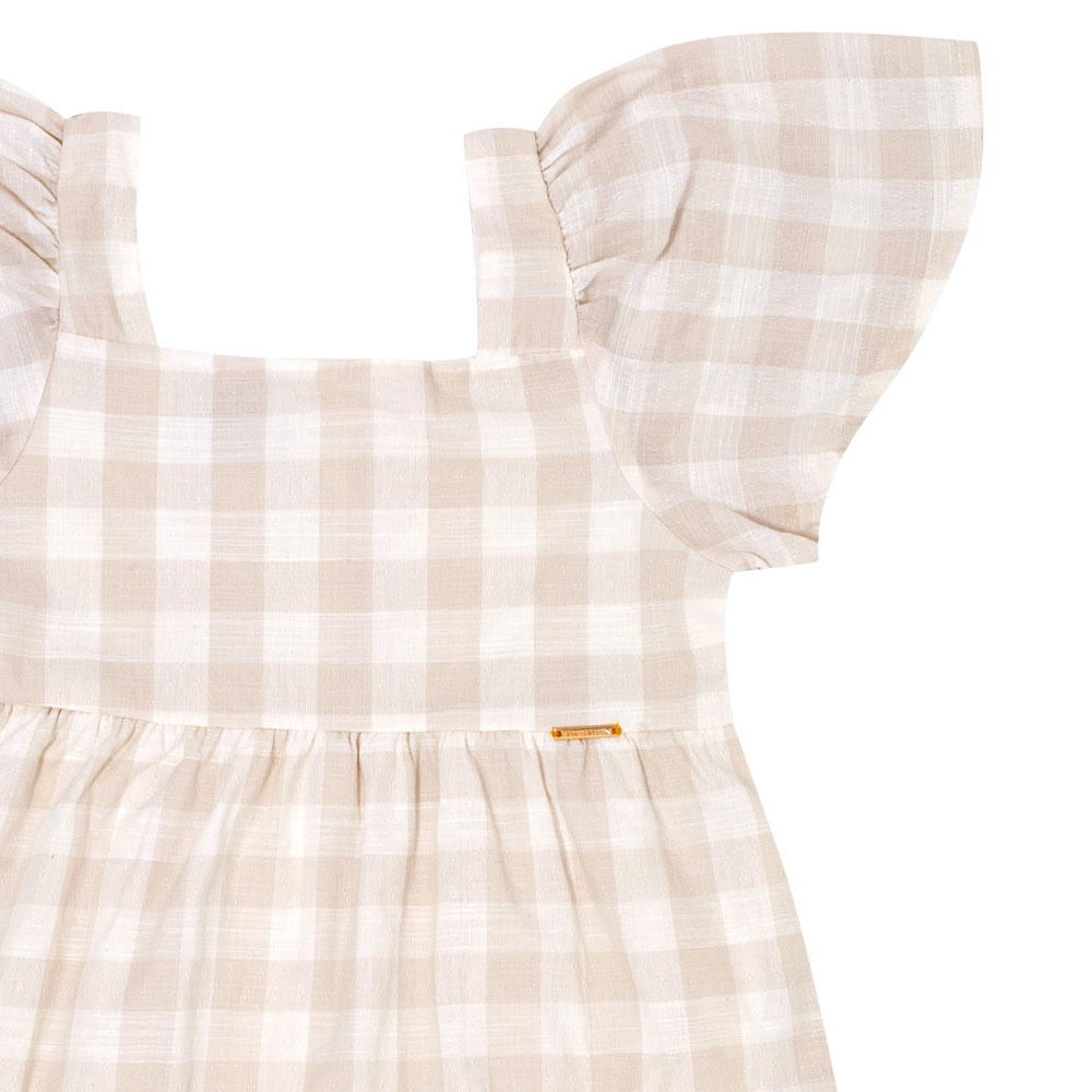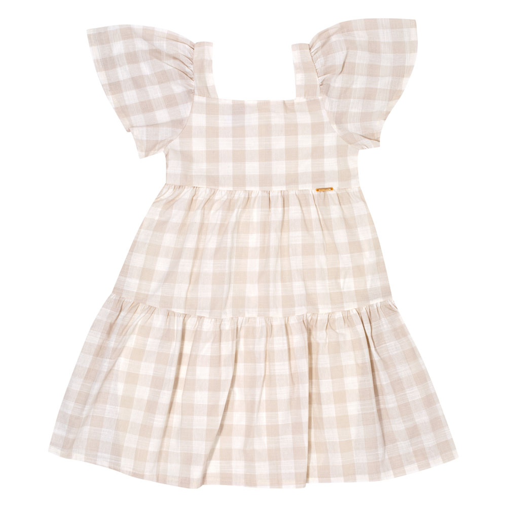 Aposte neste vestido para deixar sua pequena fashionista estilosa e confortável! Confeccionado em tecido xadrez fio tinto na cor off white, modelagem ampla para melhor movimentação. Uma fofura ideal para usar em ocasiões especiais.