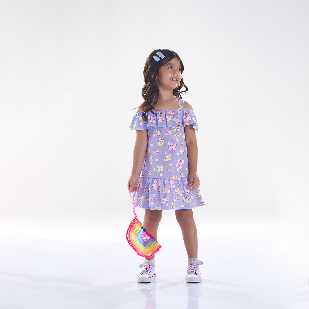 A Pulla Bulla Trouxe um Vestido leve e fresco, ideal para os dias de Verão. Confeccionado em Meia malha na cor Lilás com estampa rotativa de florzinhas. Perfeita para os dias mais quentes, garantindo mais liberdade de movimento, conforto e charme para a sua menininha.
