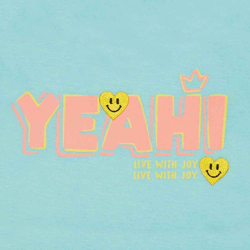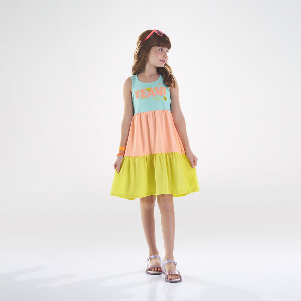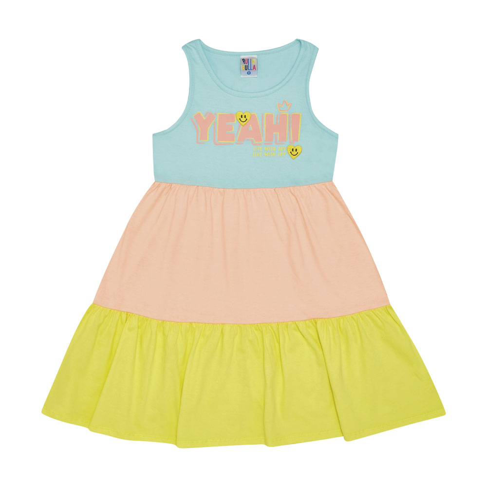 Um vestido a cara do verão com conforto, leveza e estilo. Confeccionado em Meia malha possuindo três cores Azul turquesa, Laranja e Amarelo com a estampa “Viva com alegria Sim!” e detalhe de termocolante. Perfeita para os dias mais quentes, garantindo todo frescor e charme para a sua menininha.